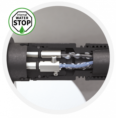 Sie fragen sich, warum dieses Merkmal benötigt wird? Weil es zusätzliche Sicherheit für die Leitungsinstallation bietet. Temperaturschwankungen und damit Kondensation, fehlerhafte Installation und auch beschädigte Kabel können Ihr schlimmster Feind werden, wenn Feuchtigkeit und Wasser (Kapillarwirkung) in Ihre Geräte eindringen! Jeder Kontakt hat seine eigene, zusätzliche Abdichtung, um das Eindringen von Wasser zu verhindern (längswasserdicht).