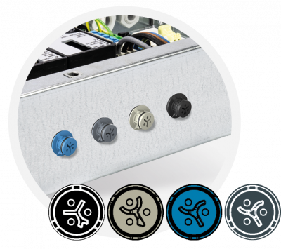 Die Geräteanschlüsse werden in entsprechenden Gehäusebohrungen von Geräten integriert und bilden die Schnittstelle des Gerätes zum RST®-System.