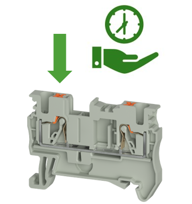 WTPN-Reihenklemmen ermöglichen dank zuverlässiger Push-in-Technologie ein schnelles und müheloses Einführen der Drähte. Einfach den Leiter einführen – ganz ohne Werkzeug und manuelles Festziehen der Schrauben. Das spart Zeit bei der Verkabelung und erhöht die Gesamteffizienz der Installation.